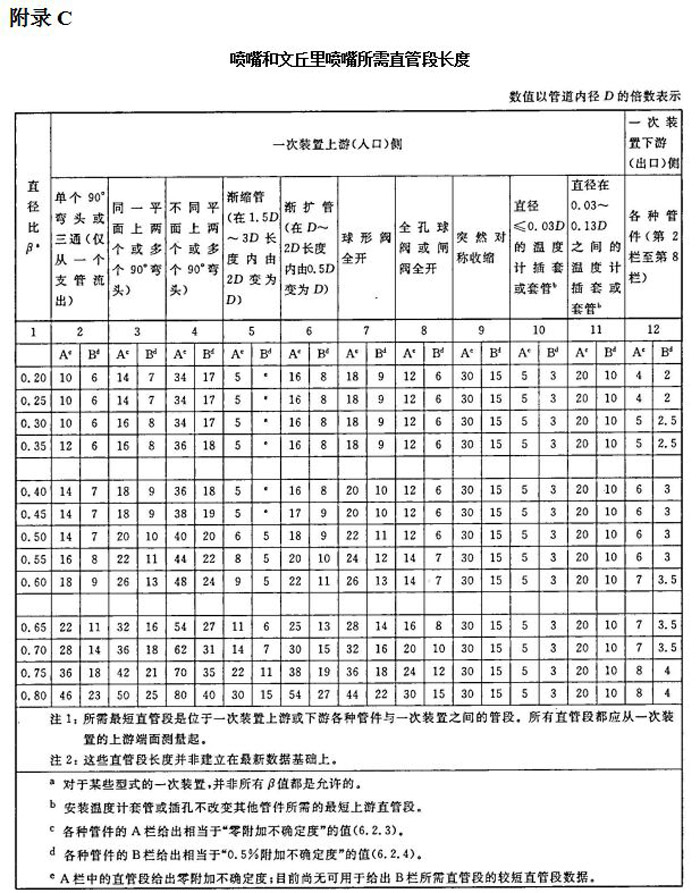公稱直徑DN100~350mm,0.25≤β≤0.7,10≤ReD≤10,K/D≤10×10(K管壁粗糙度:熱(rè)拉不鏽(xiù)鋼<0.03mm,軋製不鏽鋼0.0~0.10mm)